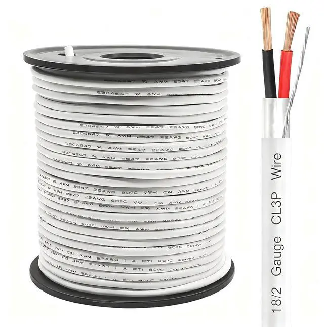 18/2 Shielded Wire 150FT CL3P Jacket Pure Copper Wire, Spool 18 Gauge 2 Conductor Stranded Plenum Cable for Security Alarm Access Control Sound