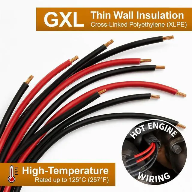 Great for engine compartment wiring of cars, trucks, trailers, boats, and more. Rated 50vDC.