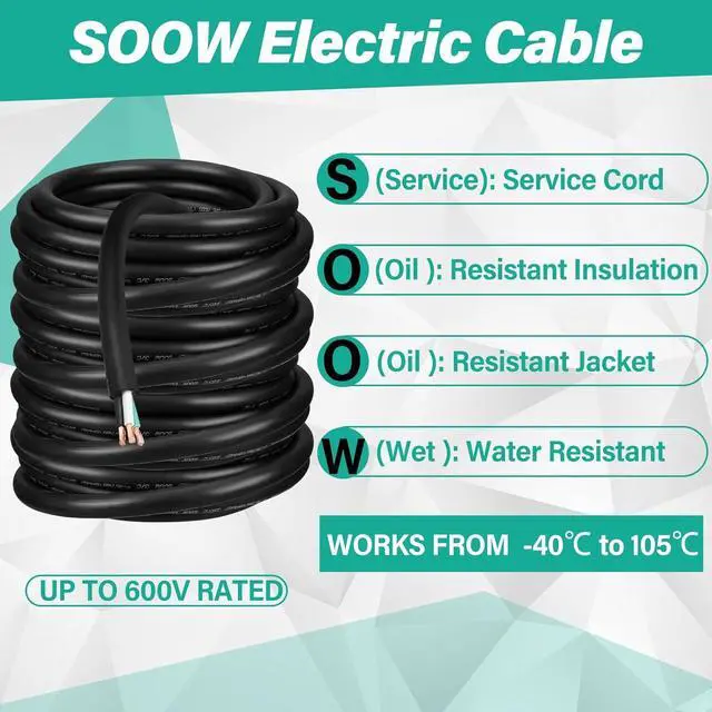 Easy to Use: installation and usage of the SOOW cable cord wire is hassle free due to its lightweight construction and flexibility; The cable wire has 3 conductors are color coded for easy identification, black, white and green color coding removes any confusion during installation, saving you time and effort