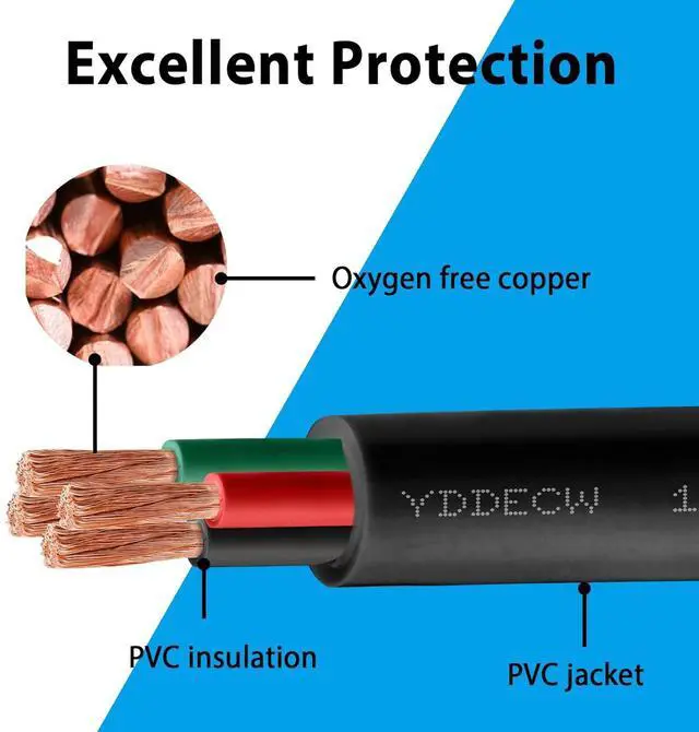 Free Copper) Wire: Our 12/4 AWG OFC (Oxygen Free Copper) wire has 4 conductors. Each conductor features 72 thin copper wire to manufacture, delivering enhanced conductivity for greater current capacity. Benefit from heightened corrosion resistance and superior heat absorption compared to non-OFC wire, ensuring reliable performance and peace of mind.
