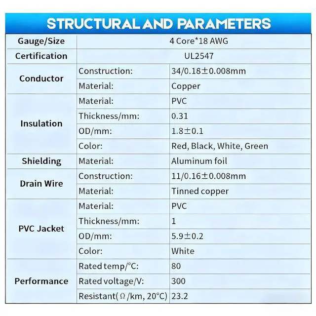 • 2. 18 AWG Oxygen-Free Copper Wire: 98% stranded copper conductors with low resistance to ensure stable power delivery in audio systems, industrial and household circuit.