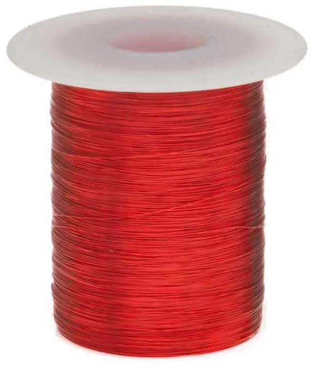 Magnet wire is copper wire with a thin layer of insulation, and is used in a variety of applications including transformers, wound coils, motors, solenoids, and instruments. Raw copper is drawn to meet specific size requirements based on the National Electrical Manufacturer's Association (NEMA) standards. This magnet wire meets the NEMA MW-80-C standard for operating temperature (155°C/311°F) and insulation makeup. The insulation is made from modified Polyurethane with a polyamide overcoat and protects the coiled wire from short-circuiting.