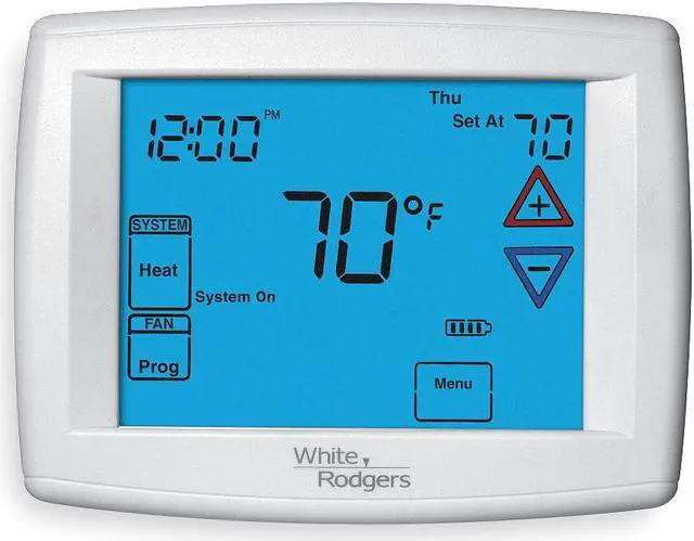 Low Voltage Thermostat, Stages Heat 3, Stages Cool 2, Temp. Settings per Day 0, 2, 4, Programs per Week 7, 5-1-1, or Nonprogrammable, Terminal Designations -, +, 6, C, G, L, O/B, RC, RH, S, W/E, W2, Y, Y2, WiFi Capability No, System Switching Auto-Heat-Cool-Off-Emergency, Fan Switching Auto-On-Program-Circulate, Display Size 12 sq in, Display Type Digital, Display Color Blue, Key Pad Lockout Yes, Programmable Fan Yes, Automatic Changeover Yes, Humidification Control No.