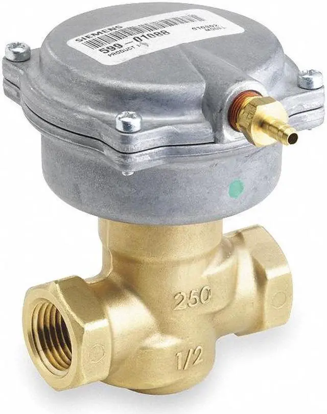 Pneumatic Control Valve, Actuator Control Pressure - Maximum 8 psi, Actuator Control Pressure - Minimum 3 psi, Actuator Return Action Spring Return, Actuator Type Pneumatic, Actuator Voltage Not Applicable, Application Chilled/Hot Water Control, Body Material Brass, Body Pattern Two-Way, Bypass Port Coefficient of Volume (Cv) Not Applicable, Close-Off Pressure 45 psi, Coefficient of Volume (Cv) 4, Fluid Temperature - Maximum 250 Degrees F, Fluid Temperature - Minimum 35 Degrees F. This item has been restricted from sale in the following state (s): []