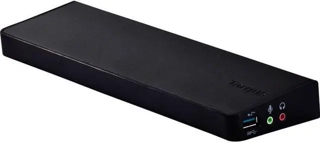 The Targus USB 3.0 dual video docking station provides an expansion solution for Windows based laptops through its single USB connection. Monitors, printers, network, keyboard, mouse all instantly accessible through the plug and play capabilities of the universal docking station. The design of the docking station allows you to rest your laptop on it to provide additional cooling and a more comfortable typing position. Always On USB ports enable you to continuously provide power to any device you wish to power even when the laptop is not connected. The single USB cable connection will occupy only one of your laptop's USB ports, meaning this docking station can be used with different brand laptops, making it a popular choice for IT managers.