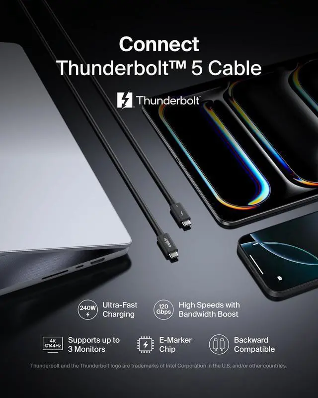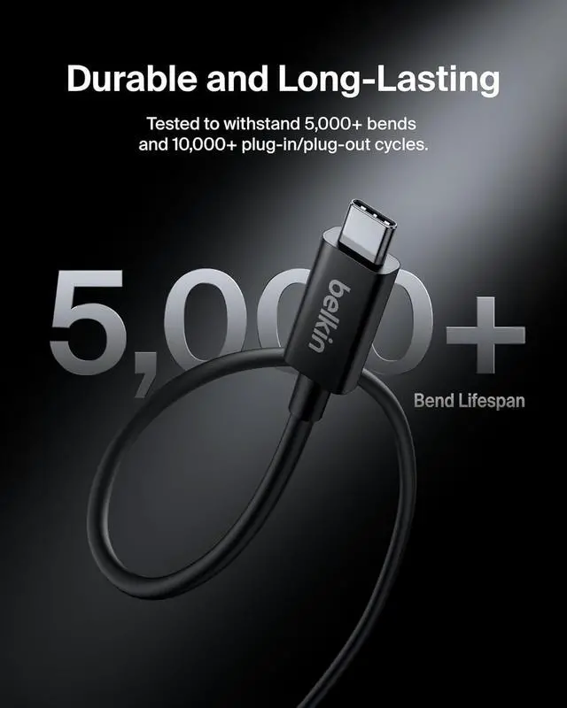 3X FASTER CHARGING: Belkin's Thunderbolt 5 Cable provides faster, more efficient power transfer, giving you up to triple the charging speed of Thunderbolt 4* for supported devices perfect for fast charging on-the-go.