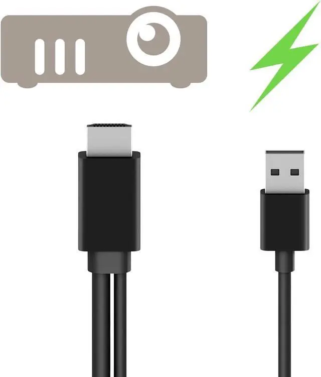 Hdmi output connects to display/projector; USB-A cable powers adapter