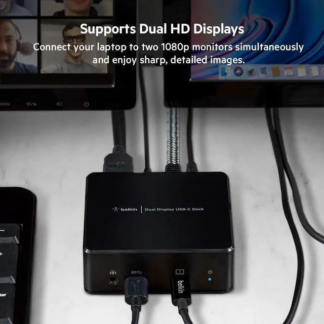 Dual display: the USB-C Dual Display Docking Station allows you to connect two HD monitors to your Windows, Mac, or Chrome laptop