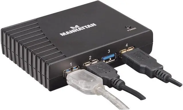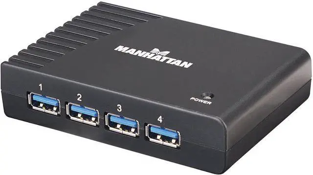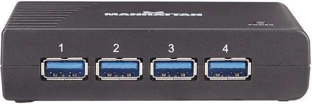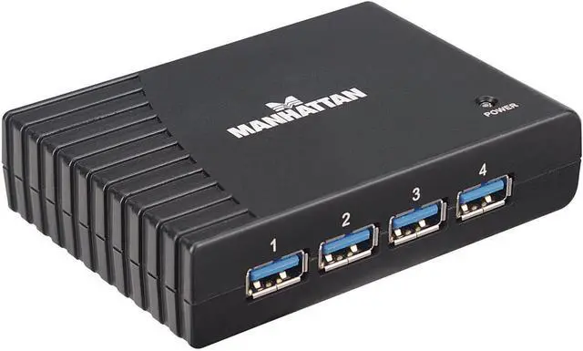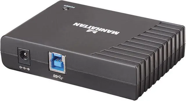 The MANHATTAN SuperSpeed USB Desktop Hub easily expands USB access for desktop and notebook computers to connect more peripherals and mobile devices. Create more connections for SuperSpeed USB devices including storage, Web cameras and more. It's backwards compatible to previous USB standards, providing versatility for attached devices. The compact and durable plastic case features the power and hub-to-PC ports on the side panel to help better organize connections and minimize cable clutter. Plug and Play with hot-swap capabilities, Windows and Mac compatibility and data transfer speeds up to 5 Gbps help the MANHATTAN SuperSpeed USB Desktop Hub consolidate numerous, less-capable hubs into a single USB solution.