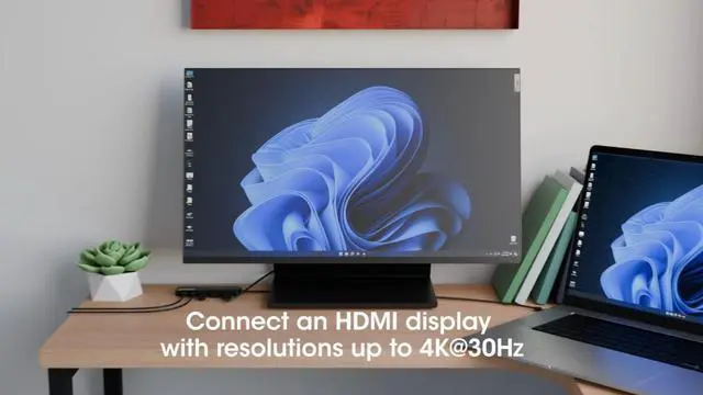 VERSATILE 5 PORT DOCKING STATION HUB: Connects your laptop to your HDMI monitor and peripherals with an optional charging input. Has One HDMI port with resolutions up to Ultra-High-Definition (UHD) 4K@30Hz (3840×2160), Two USB 3.2 Gen 1 (formerly USB 3.0) Type-A ports with SuperSpeed transfer rates up to 5 Gbps, One USB 3.2 Gen 1 Type-C data-only port with transfer rates up to 5 Gbps.