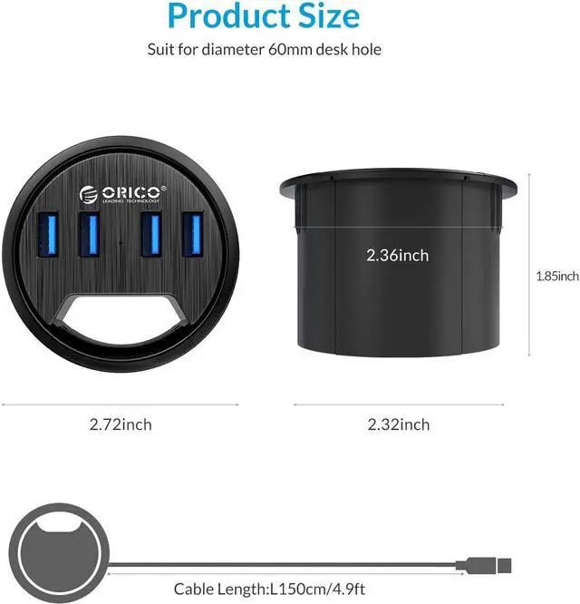 - ORICO grommet USB hub allows easy access to 4 USB 3.0 ports connection.