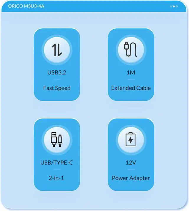 Port USB 3.2 0.5M: USB 3.2 5Gbps * 7, With 5V3A Power Port, Type c to Type c 0.5 m Cable and USB A Adapter