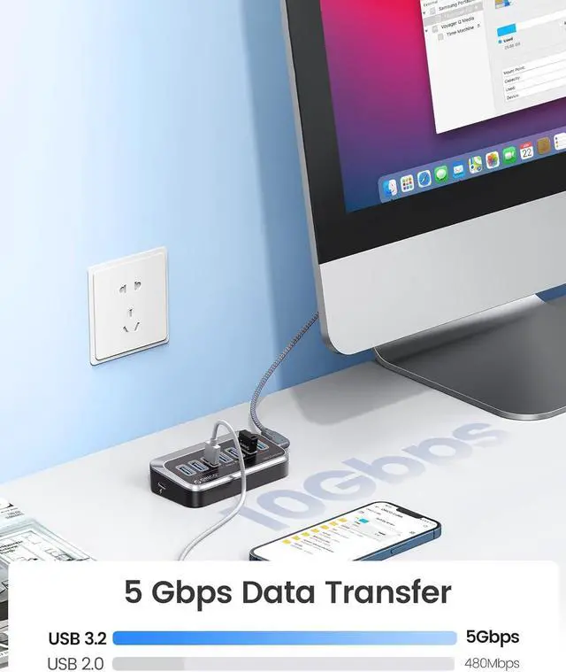 PS: This ORICO 7 Ports USB 3.2 Gen 2 Hub does NOT support charging to any devices, ONLY for data transmission.