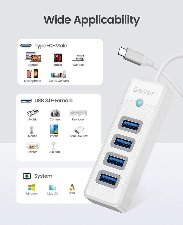ORICO 4 port long line(0.5ft/1.65ft/3.28ft) USB hub ,Meet your different usage scenarios. Multi port splitter all port is 3.0,