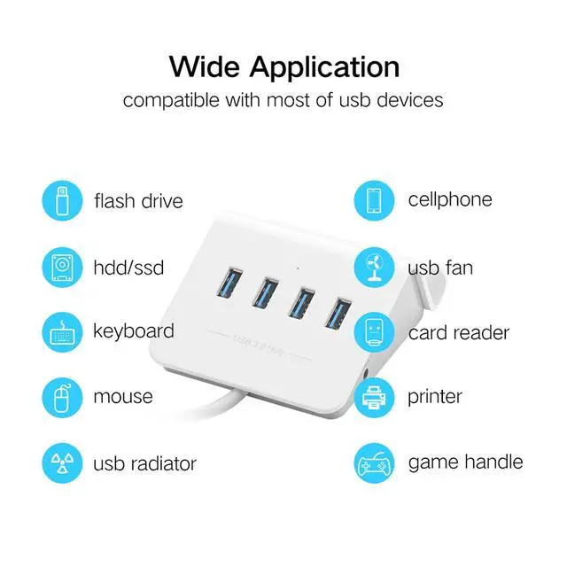 1. 4 ports USB 3.0 HUB converter, stable connection, to meet more needs, do not worry about the interface is not enough.