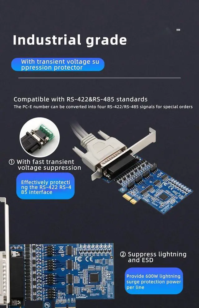 Serial Card Usage: Converting single ended PCI-E signals into RS422 / RS485 signals.