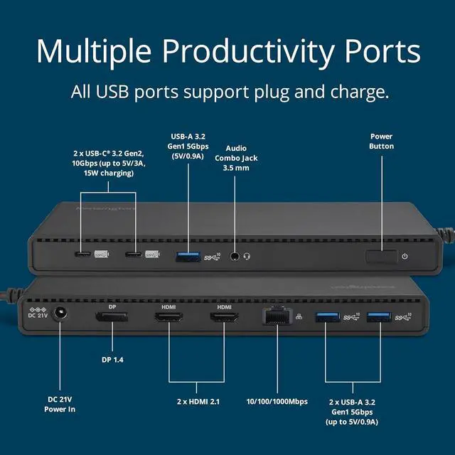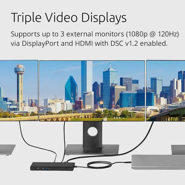 Ideal for professionals requiring a plug-and-play docking solution for USB-C laptops and organizations putting sustainability at the forefront, the SD4842P USB-C 10Gbps Triple Video Docking Station amplifies visual productivity. Aimed at reducing our environmental impact, all the plastic material used in the SD4842P is composed of 73% post-consumer recycled content (PCR). The SD4842P supports up to 3 external Full HD monitors (1080p @ 120Hz) via 1 x DP and 2 x HDMI connections. The dock also eliminates the need for cumbersome adapters, charging connected accessories without relying on a host laptop connection. Expand your screens with an effortless dock that will enhance your workflow and amplify your productivity.