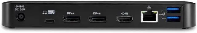 Expand your productivity with the SD4840P USB-C 10Gbps Triple Video Driverless Docking Station. Features include two DisplayPort++ 1.4 ports, one HDMI 2.0b port; support for a minimum resolution of Single 4K @ 30Hz, Dual 1080p @ 60Hz, and Triple 1080p @ 30Hz when connected to a DP1.2/HBR2 device, and a maximum resolution of Single 5K @ 60Hz, Dual 4K @ 60Hz, and Triple 4K at 30Hz when connected to a DP1.4 HBR3 DSC device; one USB-C 3.2 Gen2 port; three USB-A 3.2 Gen2 ports; a combo audio port; a Gigabit Ethernet port; flexible mounting options; optimized performance with free Kensington DockWorks software; and a three-year warranty.