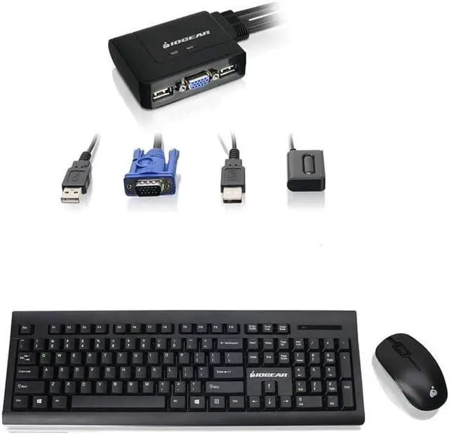 IOGEAR 2-Port USB VGA Cabled KVM Switch - 2048 x 1536 - Remote Button Switch - Plug n Play - Control two Computers, 6 ft Remote Controller Cable Included for PC, MAC, SUN GCS22U with IOGEAR Long Range 2.4 GHz Wireless Keyboard and Mouse Combo - GKM552RB