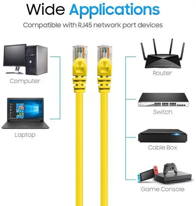 PACKAGE INCLUDES: 20 x Cmple Cat6 Patch Cable, Snagless Flexible Wire 10 Feet, Yellow. Backed with a Lifetime Manufacturer Warranty