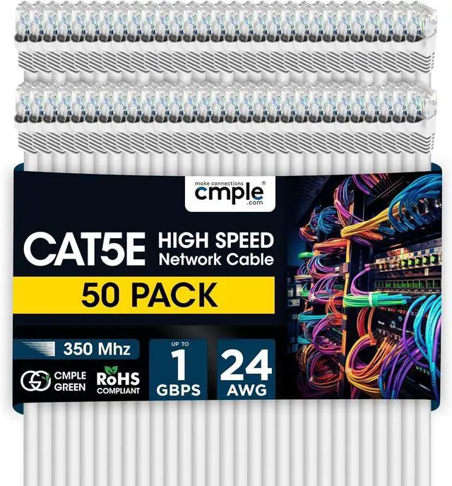 Package Includes: Cmple - Cat5e Network Ethernet Cable Computer LAN Cable 1Gbps, 3 Feet White (50 PACK)