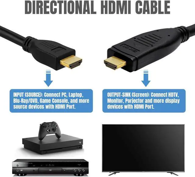 The "SINK" sign on the cable connector needs to be connected to your display, monitor, TV, etc. and the other end must be connected to the source.