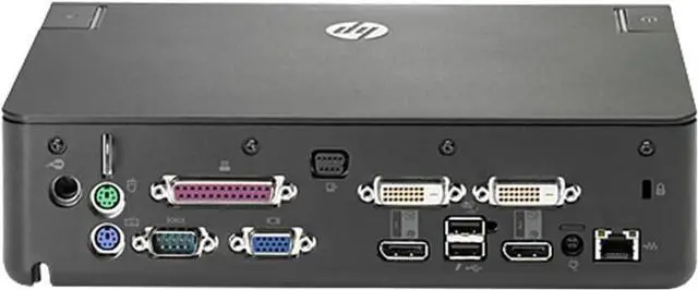 1 x VGA, 2 x DisplayPort 1.2, 2 x DVI-D, 1 x eSATA 4 x USB 3.0 ports, 2 x USB 2.0 ports 2 x PS/2 Ports for Mouse/Keyboard, 1x RJ-45 Includes 120w AC adapter Compatible with select HP laptop models - see description