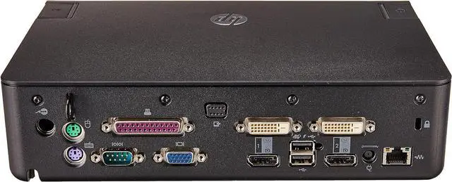 1x eSATA adapter; 1x Line-in jack; 1x Audio-out (headphone) jack; 1x Mouse connector; 1x Keyboard connector; 1x Parallel port; 1x Serial port; 1x Monitor stand port; 1x RJ-45 (network) jack.