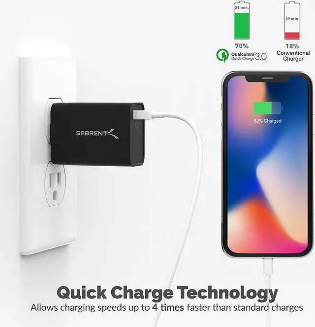 * Backward-Compatible: Also works with Quick Charge 2.0 and adaptively charges all standard USB-powered devices (including Android and Apple) at up to 2.4A. * UL and Quick Charge 3.0 Certified for quality and safety *