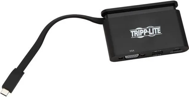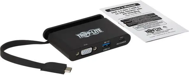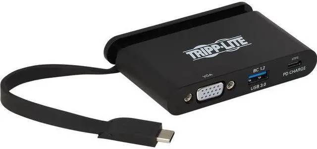 USB 3.1 Type-C Adapter Connects a VGA Monitor to Your USB-C or Thunderbolt 3 DeviceThis USB 3.1 C adapter helps you transmit 1080p video from your tablet laptop Chromebook MacBook smartphone or PC to a VGA-enabled television monitor or projector. It's an ideal tool for giving video presentations in conference rooms and classrooms editing multiple documents on a larger screen or streaming video for digital signage in crystal-clear 1080p. Supports USB-C DisplayPort Alternate Mode for Transmitting Video SignalsBy connecting the self-storing USB-C cable to a source device that supports USB DisplayPort Alt Mode you can output video to a compatible monitor television or projector without installing special software drivers.