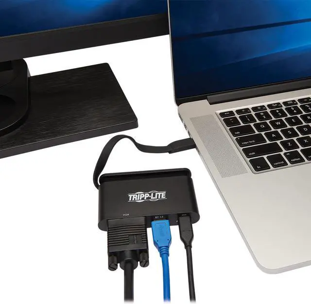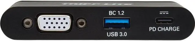 Transmits Crystal-Clear 1080p Video to a VGA DisplayTo send high-definition video to a VGA television projector or monitor connect the VGA port to the display using a VGA cable (such as Tripp Lite's P502-Series VGA cables sold separately). The USB to VGA adapter supports video resolutions up to 1920 x 1200 (1080p) at 60 Hz. Connects USB Peripherals and Transfers Data at Fast USB 3.1 Gen 1 SpeedsThe USB-A 3.0 port accepts USB peripherals such as a flash drive mouse keyboard or printer and provides up to 1.5 amps ( 7.5 watts) for charging and powering mobile devices.