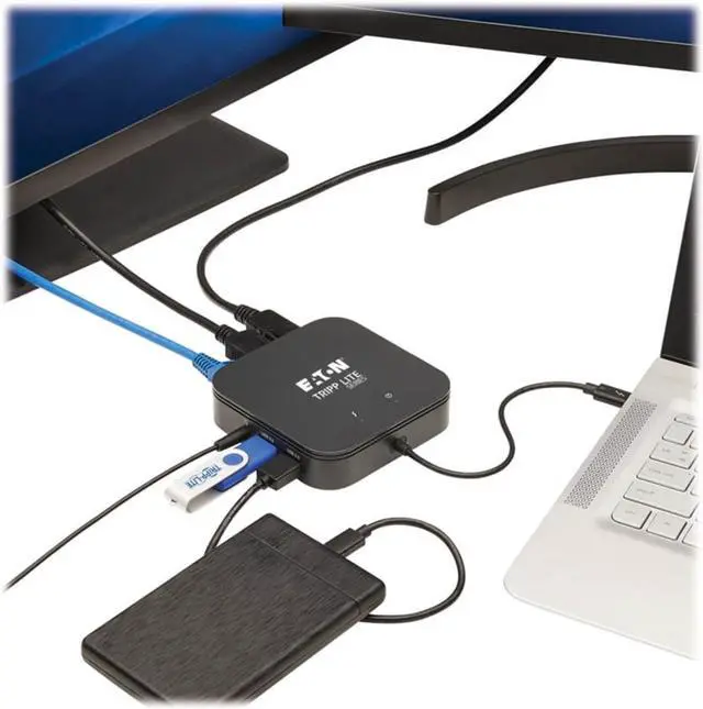 Thunderbolt 3 Dock Turns Your Laptop or Notebook into a 7-Port 8K Workstation This Thunderbolt 3 docking station dramatically expands the potential of your MacBook Pro or Windows laptop by adding seven ports to its Thunderbolt 3 port. The MTB3-DOCK-04 allows you to transmit 8K video to a DisplayPort monitor or 4K video to an HDMI monitor, and both ports can be used simultaneously for dual 4K/60Hz video output. You can also add USB peripherals, record a podcast, connect to a Gigabit Ethernet network, and charge your host device. Video resolutions are dependent on the host computer's specifcations. Supports DisplayPort Alternate Mode for Transmitting Audio/Video Signals By connecting the built-in Thunderbolt 3 cable to a source device that supports DisplayPort Alt Mode, you can output 8K/4K video and digital audio to a compatible monitor, television or projector without installing special software drivers. Thunderbolt 3 Supports Blisteringly Fast 40 Gbps Data Transfer Speeds The Thunderbolt 3 cable supports bidirectional speeds up to 40 Gbps, which is eight times faster than USB 3.0, four times faster than Thunderbolt 1 and twice as fast as Thunderbolt 2. With dual 20 Gbps channels moving data both directions at the same time, the MTB3-DOCK-04 is perfectly suited for video streaming and editing on two monitors, as well as transferring large RAW video or CAD files. Transmits Crystal-Clear 8K and 4K Video for Professional Editing and Digital Signage By connecting to a source that supports DisplayPort MST Mode, you may connect one DisplayPort monitor or one HDMI monitor at resolutions up to 8K (7680 x 4320 at 30 Hz) and 4K (3840 x 2160 at 60 Hz as specified in HDMI 2.0), respectively. Both ports can be used simultaneously to support dual video resolutions up to 4K @ 60 Hz. This allows you to display the same image on both monitors, extend your host desktop across both with different windows open on each, or combine both into one large display as a video wall. The host device must support DisplayPort 1.3 in order to achieve 8K resolution PD 3.0 Charging Port Charges High-Powered Devices via AC Wall Charger The USB-C Power Delivery port provides power output up to 20V 3A (60W), which is sufficient for charging and powering the connected source device, such as a MacBook or Chromebook. Connect the port to the devices AC wall charger to provide power to the host device as well as the dock. The dock works at optimal specifications while using the PD Charging port to power it. USB Ports Connect Keyboards, Thumb Drives and Other USB Peripherals Two USB-A hub ports accept USB peripherals, such as flash drives, mice, keyboards, external hard drives and printers. When the USB-C PD port (see above) is powering the dock, both USB-A ports support lightning-fast USB 3.1 Gen 2 data transfer rates up to 10 Gbps. When using bus-powered mode, one port supports 10 Gbps, and the other supports USB 2.0 speeds on a first-come, first-serve basis. Both are backward compatible with previous USB generations. Accesses a Wired Gigabit Ethernet Network The RJ45 port offers access to a Gigabit Ethernet network when no Wi-Fi is available or when a wired connection offers faster speeds. Connect using a UTP cable (sold separately), and enjoy true 10/100/1000 Mbps Ethernet speeds for fast data transfers. Connects Stereo Audio Equipment for Recording and Playback This Thunderbolt 3 docking station contains one 3.5 mm mini stereo jack, convenient for connecting speakers, headphones or a microphone to your workstation. You can listen to music or record the latest episode of your podcast. Ready to Use Right from the Package, So You Can Plug and Play Immediately The plug-and-play Thunderbolt 3 dock is specifically designed for use with the MacBook Pro or Windows laptop equipped with a Thunderbolt 3 port. It requires no extra software to be downloaded and installed. Simply connect the Thunderbolt 3 plug to your computers Thunderbolt 3 port.