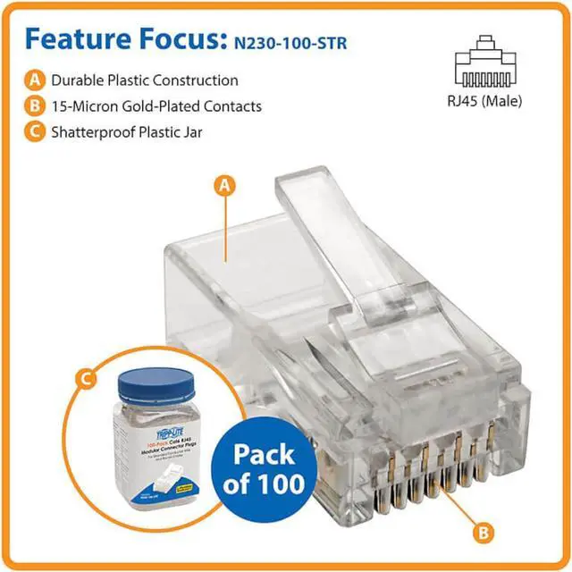 Works with most available RJ45 crimp tools (excluding AMP)
