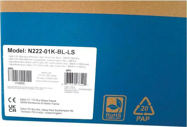 CAT6 1000 FEET ETHERNET CABLE: Rolling cable box features Tripp Lite's LSZH blue Cat6 Ethernet spool. Easy pull box let's you simply roll out what you need for your installation, and keep the remainder stored away.