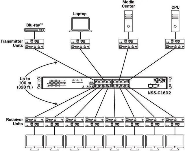 Connect up to 64 transmitters and 255 receivers in single managed switch installation