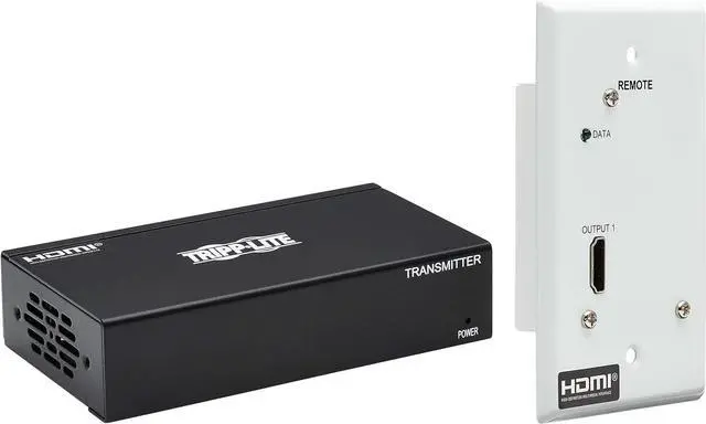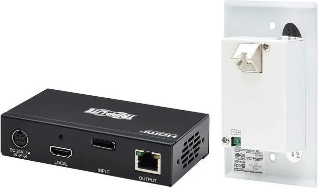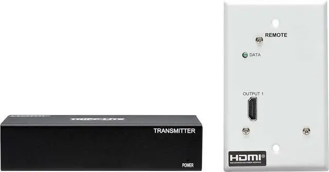Kit with transmitter and receiver extends 4K DisplayPort signal via Cat6 cable to HDMI display up to 230 feet (70.1 m) away. Combines with optional B127A-010-H repeaters to extend signal to 400 feet.