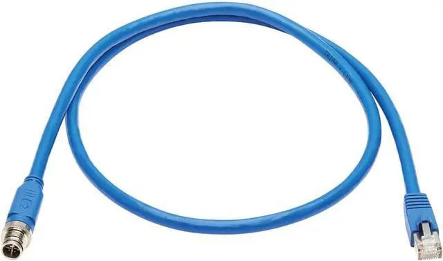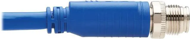 CAT6A M12 CABLE RECOMMENDED FOR INDUSTRIAL AND OTHER HARSH ENVIRONMENTS: This M12 X-Code cable connects 10 GbE networks in wet/humid environments, places subject to vibration and other areas where protection from harsh elements is essential, such as factories, warehouses, recycling plants, airports, railways and machine shops. The circular M12 connector with 12-millimeter locking thread is especially designed for washdown and corrosive applications, including agriculture, alternative energy, communications, factory automation, measurement and control, robotics, transportation and food/beverage facilities. IP68 RATING DENOTES RESISTANCE TO DUST AND WATER:The IP68 rating means the M12 connector end is not only 100% protected against dust, but also able to endure immersion in 1.5 meters of water for up to 60 minutes with no damage or decline in performance. SUPPORTS POWER OVER ETHERNET TO SAVE YOU MONEY AND GIVE YOU MORE INSTALLATION CHOICES: Because this Cat6a cable supports high-power 60W PoE, it can supply the power to operate compatible data, voice, security and audio/video PoE devices, such as surveillance cameras, VoIP telephones and access control devices. This saves you the expense and effort of purchasing, connecting and installing individual power supplies for each device, as well as installing separate power and data cables. It also helps you install PoE devices in areas far away from AC outlets, such as poles or ceilings. CMR-LP CERTIFIED FOR CABLE INSTALLATIONS WITH INCREASED POWER LEVELS: UL's Limited Power (LP) certification indicates this cable has been evaluated to handle the marked current under installation scenarios without exceeding the temperature rating of the cable. This CMR-LP-certified cable provides a simple way to prepare installations for increased power levels without having to worry about susceptible issues caused by excessive heat. COLORED BLUE TO AVOID MISIDENTIFICATION THAT CAN CAUSE COSTLY DOWNTIME: This Cat6a F/UTP copper cable features a blue PVC jacket that allows easy, fast identification in field devices, controllers and switches and helps prevent the cable from becoming inadvertently disconnected.