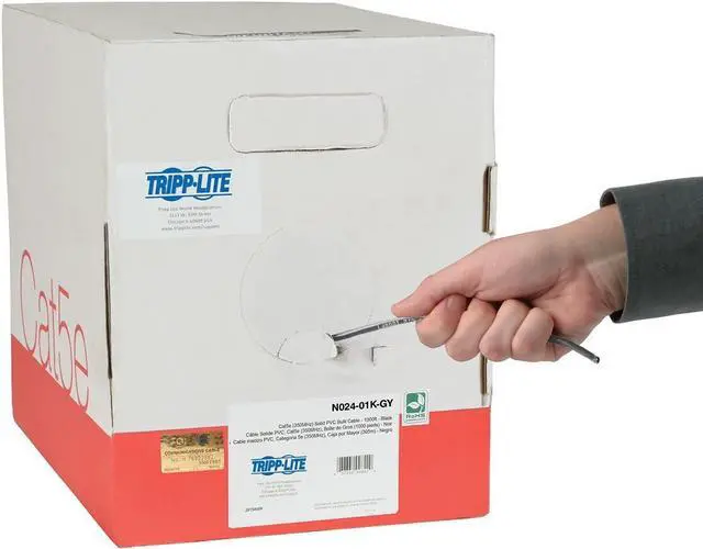 The N024-01K-GY Cat5e 350 MHz Bulk Solid-Core Plenum-Rated PVC Cable is premium cabling designed for Cat5/5e premise applications in air ducts and drop ceilings, such as connecting an Ethernet wall jack to a router, patch panel or switch. Designed for fast transmission and excellent signal quality, this gray cable ensures peak performance through your LAN (local area network). Manufactured from 24 AWG copper wire, the four-pair solid UTP N024-01K-GY delivers speeds up to 350 MHz/1 Gbps. Protected by a plenum-rated PVC jacket, this cable is ideal for all horizontal wiring applications, including 10/100/1000 Base-T Ethernet, 100 Mbps TPDDI, 155 Mbps ATM, ISDN, voice and Token Ring Type 3 applications. The N024-01K-GY meets most current industry standards, including IEEE 802.3ab, IEEE 802.5, ANSI/EIA/TIA 568, ISO/IEC 11801 and ETL (category 5e, draft 11)..