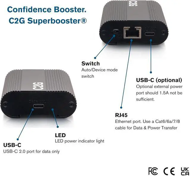 This camera extender is designed with chipset technology that offers a higher compatibility rate than other USB extenders on the market. The C2G Superbooster USB Camera Extender has been tested and proven by C2G to support leading PTZ cameras at 1080p or 4K resolutions depending on the camera.