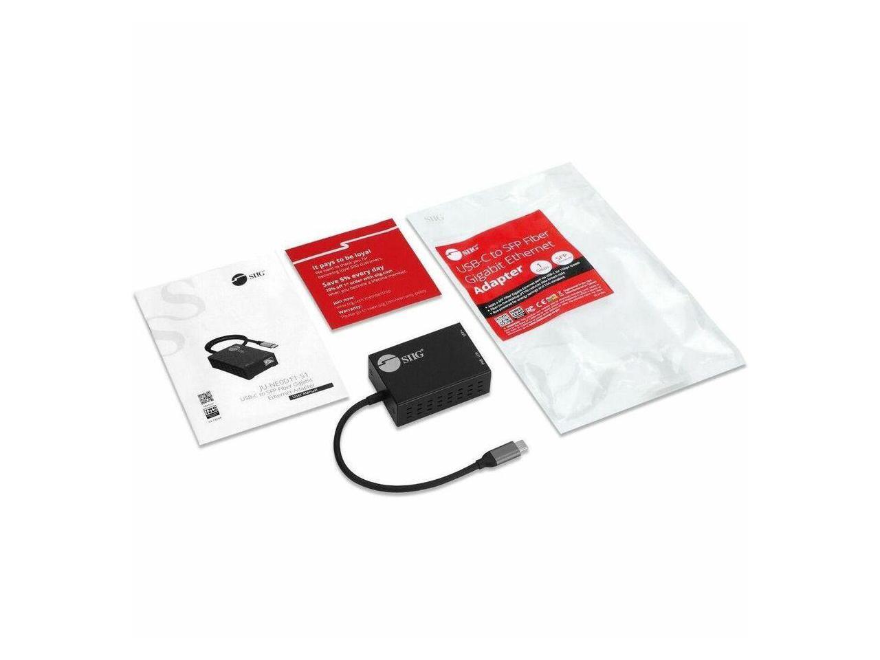 SIIG USB-C to SFP Fiber Gigabit Ethernet Adapter - TAA compliant - USB-C to SFP Gigabit Ethernet adapter allows you to quickly add a SFP Fiber Gigabit Ethernet connection through a USB-C port on your