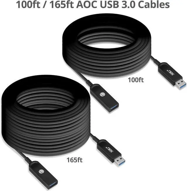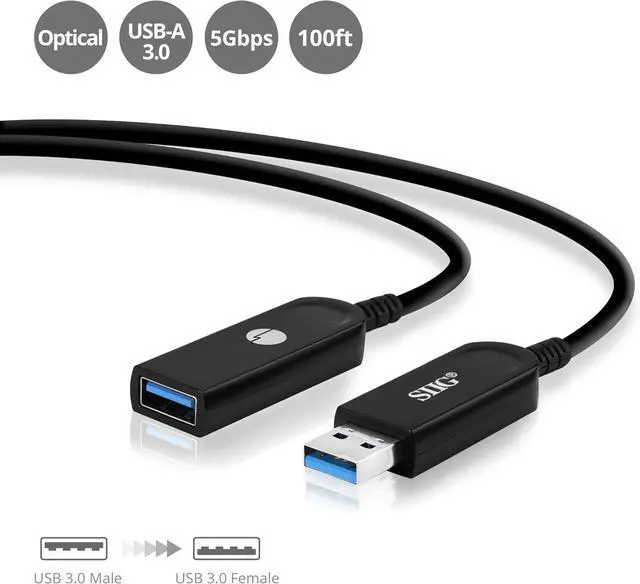 The SIIG CB-US0U11-S1 is a 30-meter USB 3.0 active optical cable with a male to female USB-A connection. Supports data transfer speeds up to 5Gbps, ideal for extending USB 3.0 signals over long distances without signal loss. Please note that it is not compatible with USB 2.0 or 1.1 devices.