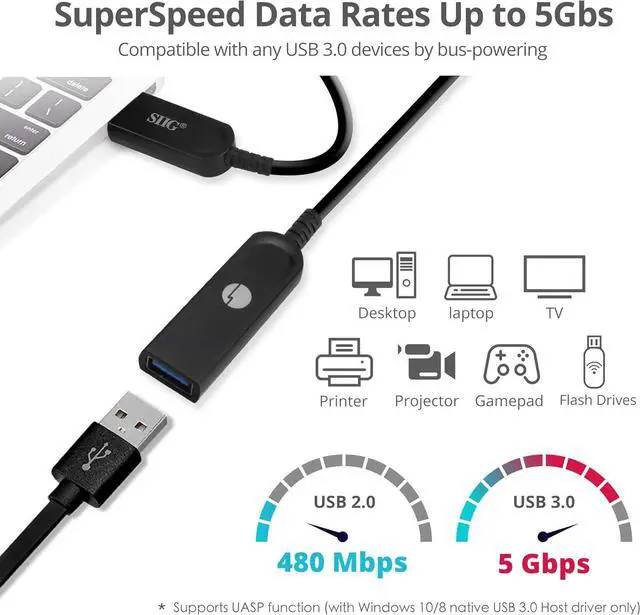offers a simple way to extend your USB connections while supports SuperSpeed USB up to 5Gbps for low-latency, high-throughput performance. Fully compatible with USB 3.2 Gen 1 and a wide range of USB 3.0 devices, including 4K cameras, storage drives, and other high-speed peripherals.