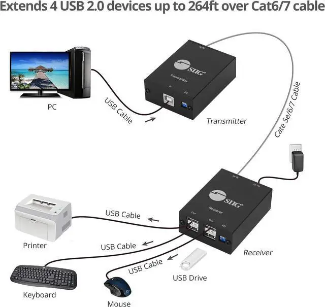 LONG RANGE EXTENDER USB 2.0 - Transmission distance up to 264 feet (80 meters) to connect to far away USB devices