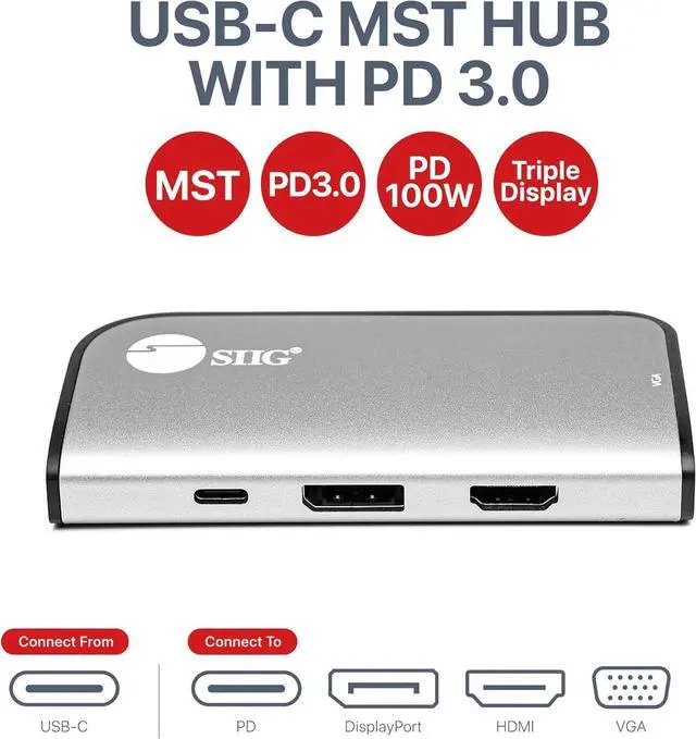 MULTIPLE DISPLAY MODES - This USB-C MST hub with DisplayPort 1.2 Multi Stream Transport (MST) technology, Mirror mode same content on each display, Extended mode with individual content on each display, and Panoramic Video Wall display mode which combines multiple monitors to use as one large display