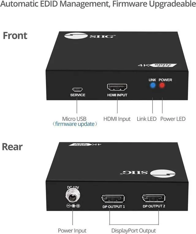EDID and G-Sync Support: Includes EDID copy function and G-Sync monitor support for optimal display settings.