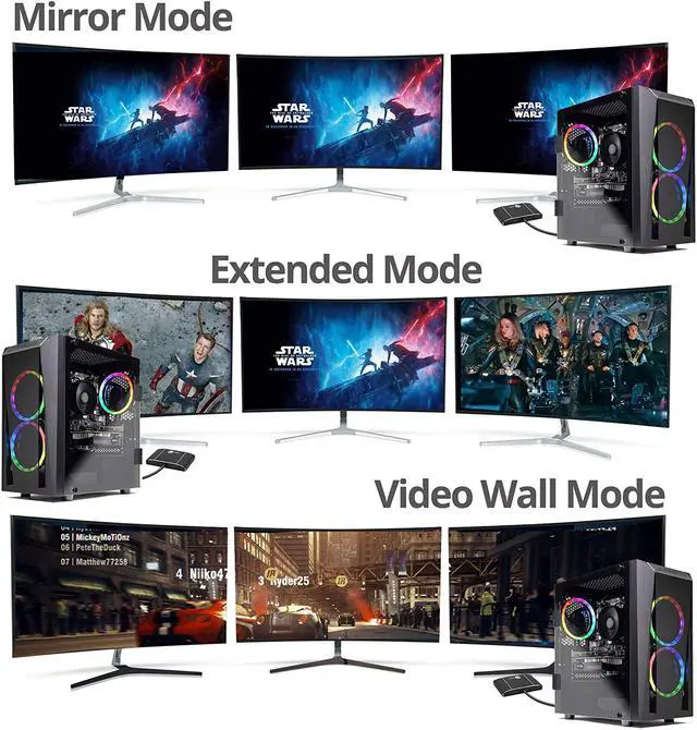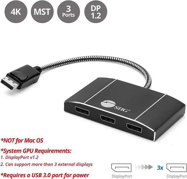 IMPORTANT NOTES - !!!No Support for MacOS!!!-!!! DisplayPort 1.2 GPU/ Graphics Card required. Requires GPU/Graphics card supporting more than 3 external screens. Intel HD Graphics are limited to 3 external screens altogether. See Product Description for more important information. Contact us before purchasing if you are not sure about compatibility. Boost your productivity by connecting three DisplayPort screens to single DisplayPort 1.2 output with Multi-Stream Transport (MST) technology