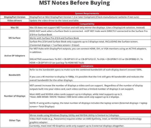 WARRANTY & CUSTOMER SERVICE: Technical support located in the Silicon Valley. We understand that setting up an MST displayport hub can be complicated so please contact us with any questions or concerns