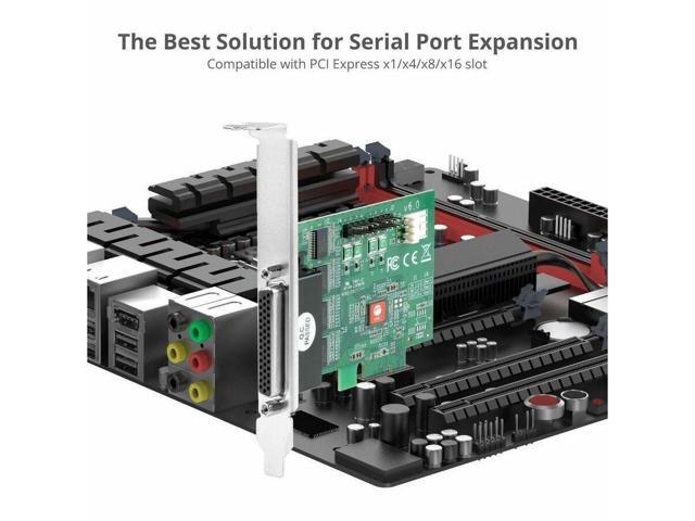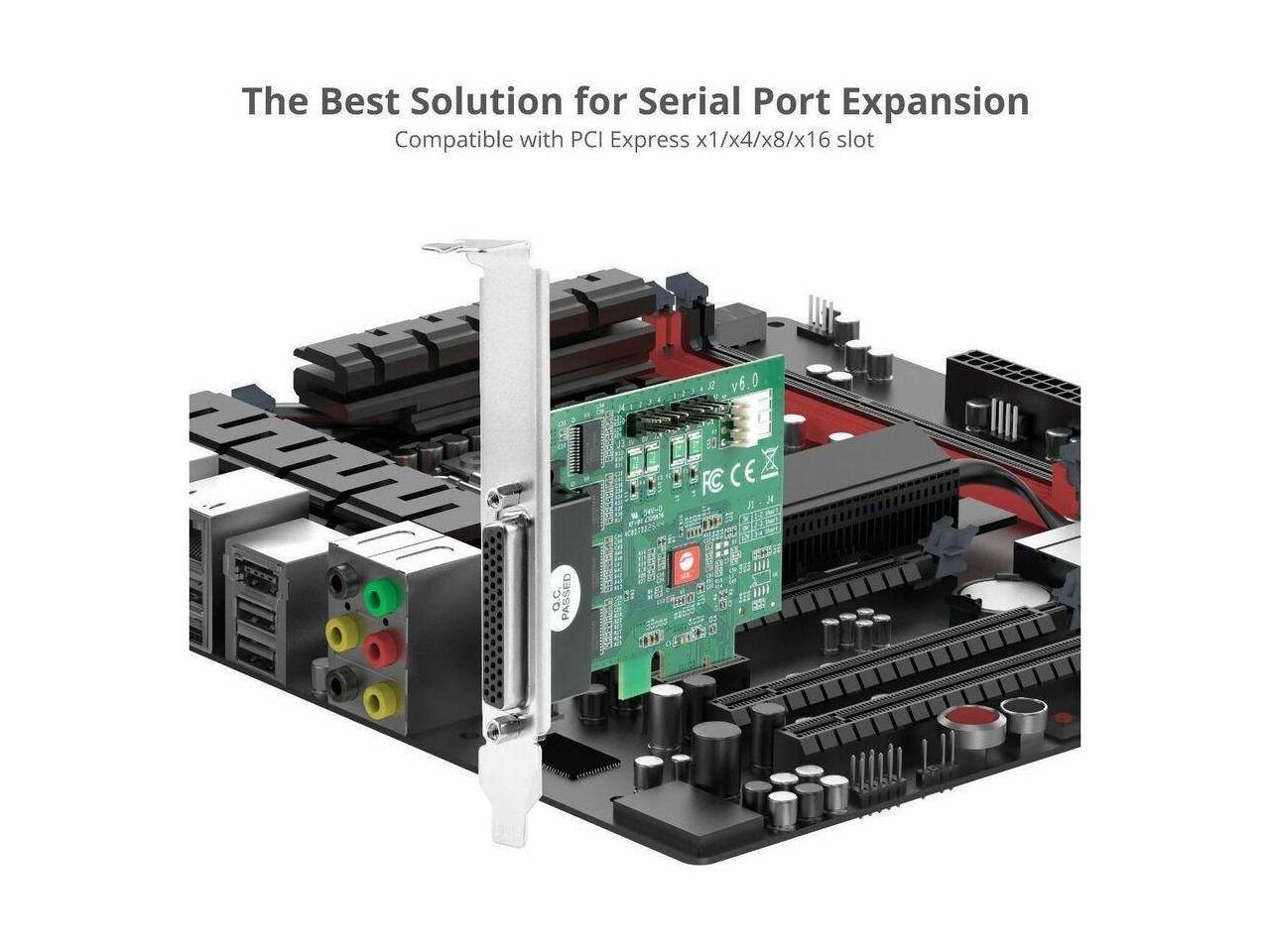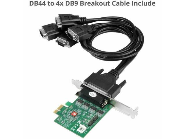 - PCIe 2.0 x1 to 4X RS-232 Male 9-pin DB9