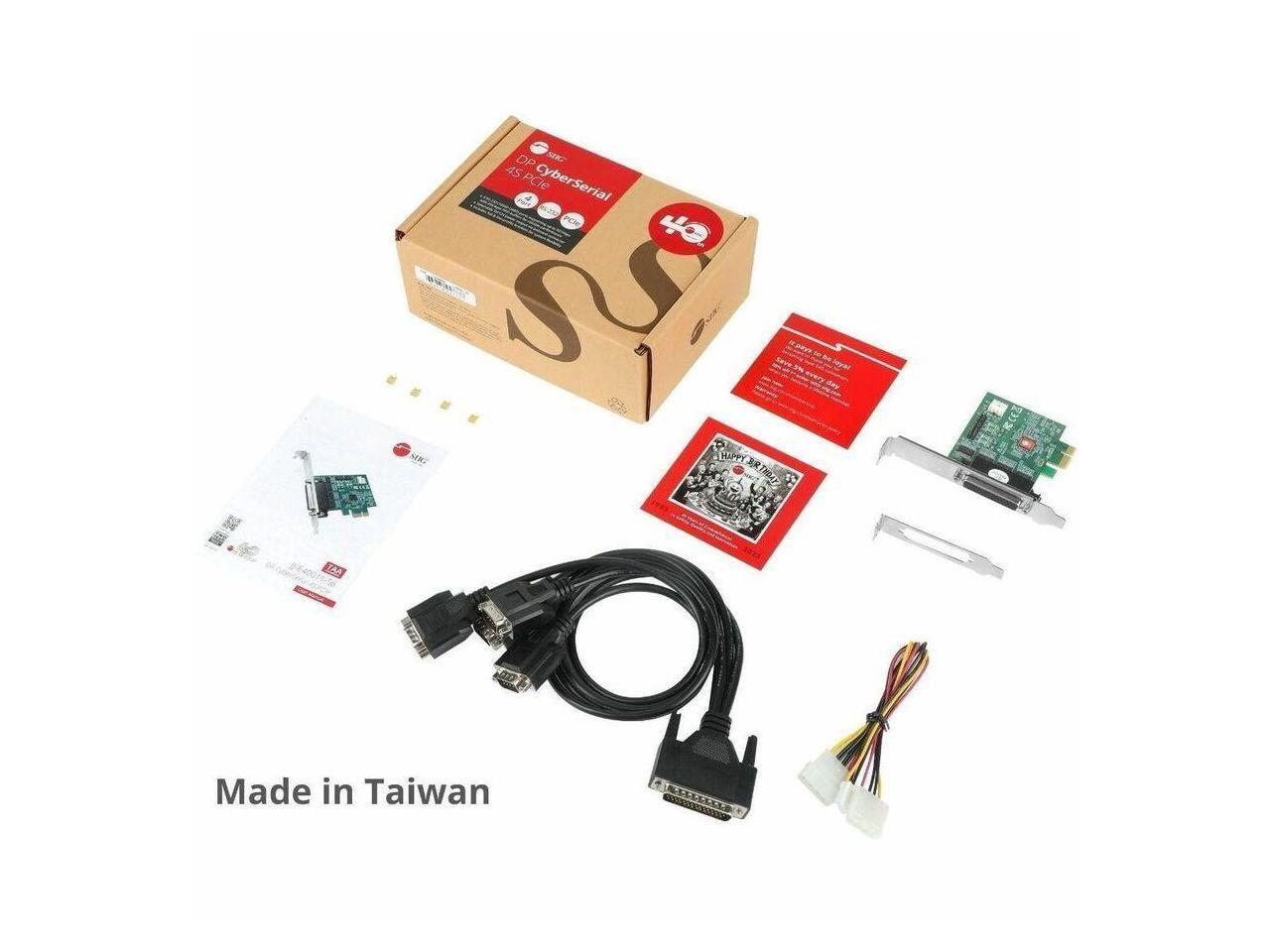 SIIG DP CyberSerial 4S PCIe, PCI Express x1 Interface, Dual-Profile Design, TAA Compliant - SIIG DP CyberSerial 4S PCIe - Baud Rates up to 921Kbps - PCIe 2.0 x1 to 4X RS-232 Male 9-pin DB9 - RS-232 5V