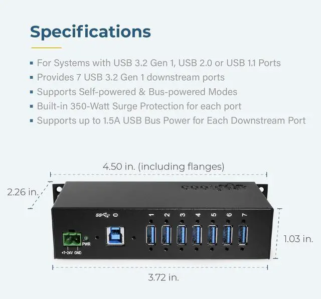 Product Dimensions: 6.44 x 2.6 x 1.42 inches (L x W x H) Item Weight: 1.85 pounds Surface Mountable brackets included Din-Rail mountable (mounting plates included) Rugged Metal Enclosure